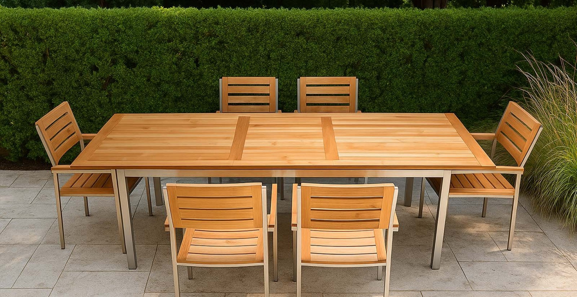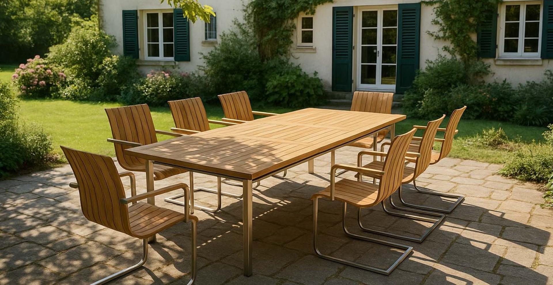 Die Beste Qualität Teakholz kombiniert mit bester Qualität Edelstahl ergibt den Gartentisch „Idea“.