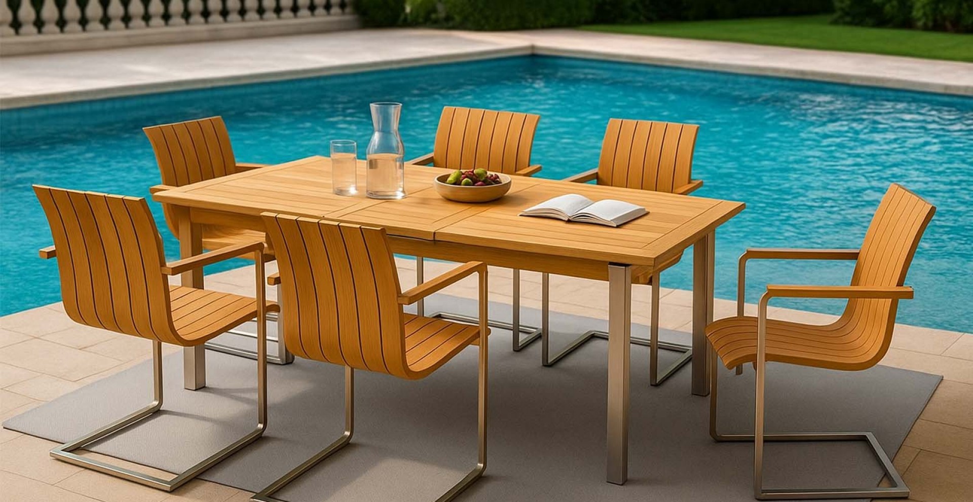 FantasTeak Gründer M. Kirdök hat beim entwerfen dieses Modells großen Wert auf die Zweckmäßigkeit gelegt. „Mit diesem Modell tragen wir den Wünschen vieler Kunden Rechnung“, erklärt er, der den Tisch im Jahre 2011 entworfen hat. „Die Kombination der Vorzüge der beiden Materialien - die Langlebigkeit des Teakholzes und die Stabilität des Edelstahls bei gleicher Langlebigkeit - garantiert optische Ausgewogenheit und Leichtigkeit“.